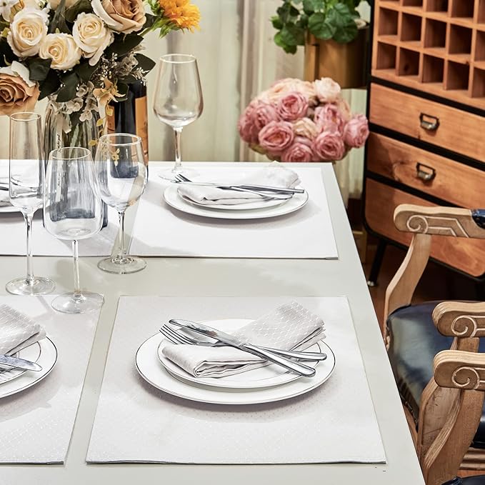 - Occasion: they could be used such as dining table placemats, kitchen placemats, dinner placemats, place mats indoor on valentine’s day, family party, valentine’s day, Christmas, birthday party, wedding, new years’ day or just daily life