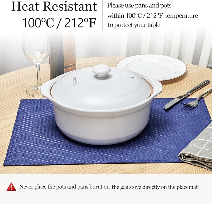 - Function of the fabric polyester cloth place mats: they are durable, waterproof, Washable, Wipeable and Heat Resistant, if there are water, stain, spill on the table placemats, just use a wet rag to wipe them. And meanwhile, the set of 4 rectangular will decorative your dinning diner table and your kitchen