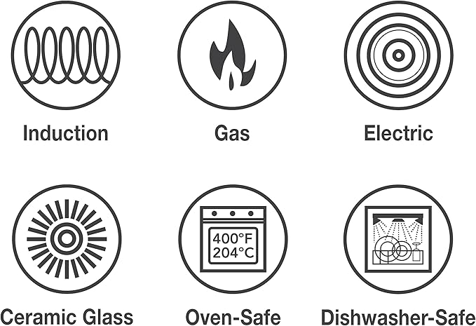 - Universal Compatibility & Oven-Safe: Works on all stovetops (induction, gas, electric, ceramic) and is oven-safe up to 450°F/232°C.