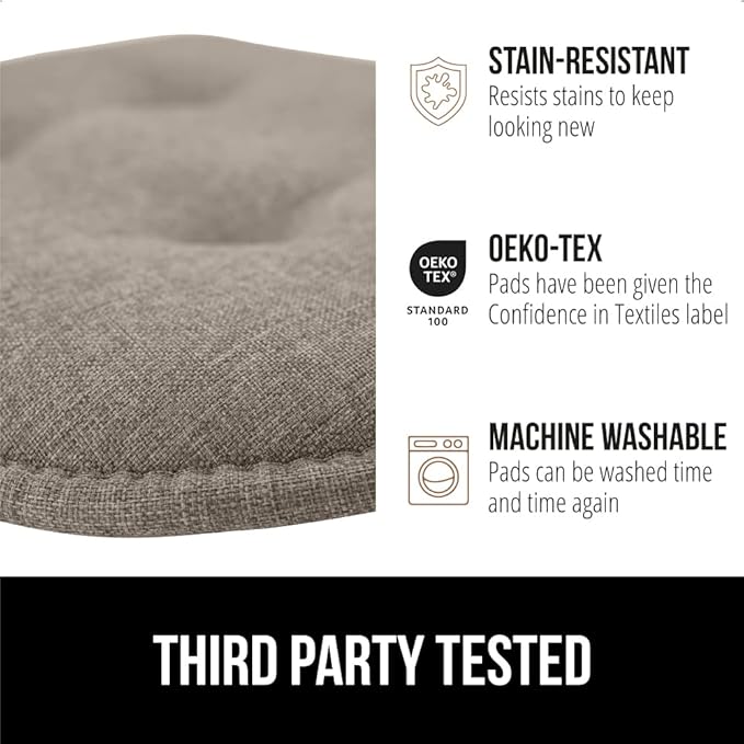 - EASY CLEAN AND PERFECT FOR YOUR HOME: chair pads are both stain and tear resistant for long lasting use; machine washable for a fast and easy clean; pads have Confidence in Textiles label, and have been tested for harmful substances according to OEKO-TEX Standard 100; performance, durability and emissions tested; feel confident and rest easy with our high product safety standards