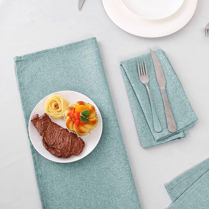 H.VERSAILTEX Linen Textured Cloth Napkins Set of 12 (18" X 18") Linen Textured Dinner Napkins Waterproof Extra Soft Thick Durable Reusable Napkins with Hemmed Edges, Heather Aqua