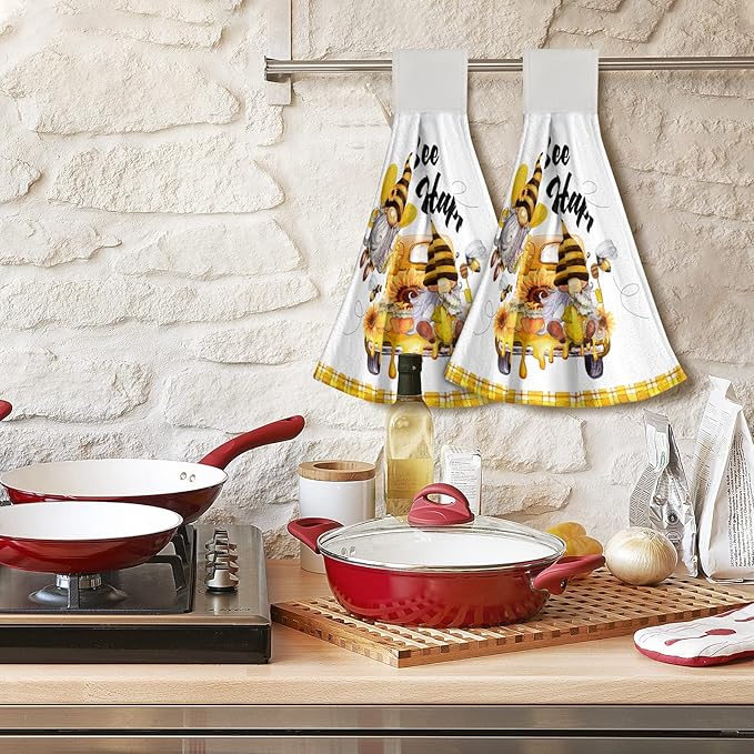 - ✿【Widely Used】: Perfect decor for bathroom, wash basin, guest room, restroom. Suitable for dish wipe, car wash, table wipe, home and kitchen, these bee gnome hanging dish towels are versatile and useful for many functions.