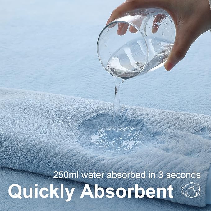 - ❤Light Blue Towels Bathroom Sets: Extra large bath towels set of 4 (35"x70"). These large bath towels are fluffy and soft, wrapping yourself up in a cozy towel, comfortable lounging after a refreshing shower or relaxing soak.