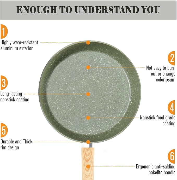 - Kitchen Cookware Set 12 Pieces: Include 8-inch fry pan / 11-inch fry pan / 9.7-inch Deep Fry Pan with lid / 1.5Q saucepan with lid / 3Q casserole with lid / 5Q casserole with lid / 2 pcs silicone utensils. Easy Clean & hand wash recommend