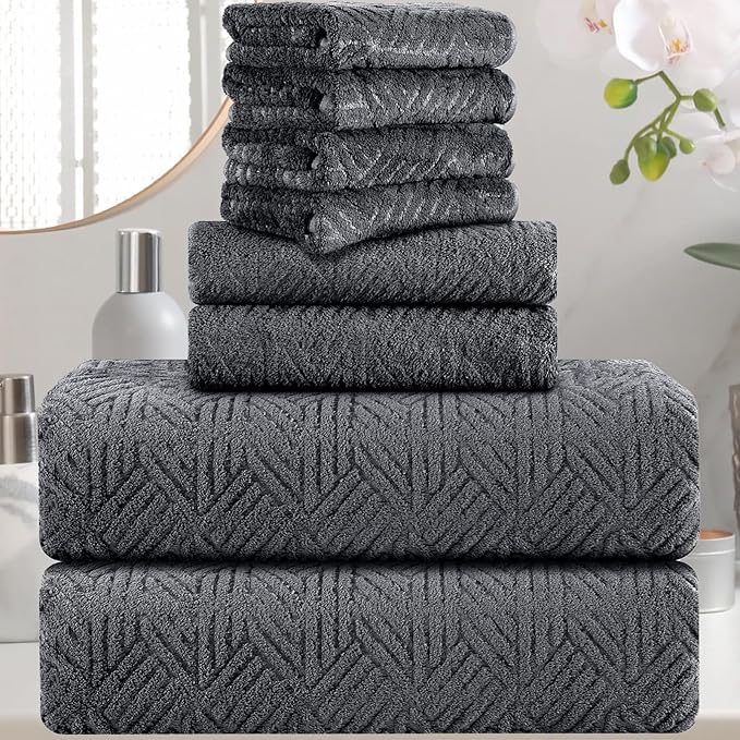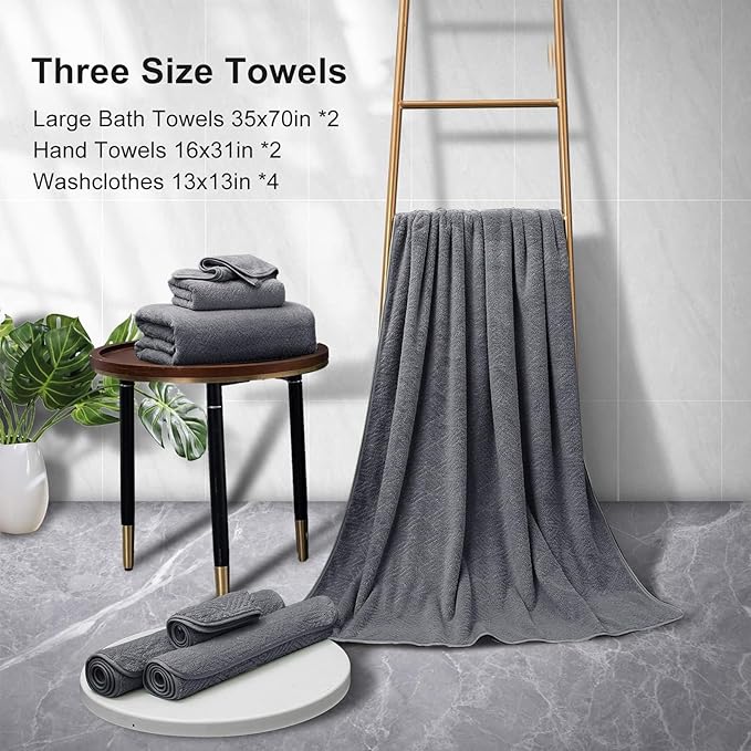 - ❤Grey Towels Bathroom Sets of 8: Extra large bath towels set of 2 (35"x70"), hand towels set of 2(16“x31”), washclothes set of 4(13"x13"),These large bath towels are fluffy and soft, wrapping yourself up in a cozy towel, comfortable lounging after a refreshing shower or relaxing soak.