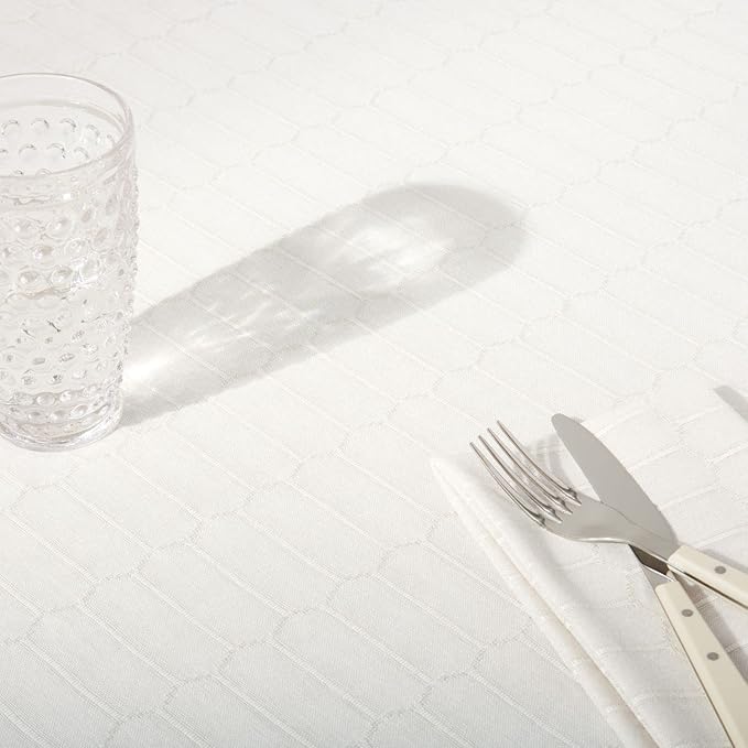 - DURABLE & COLORFAST: The Martha Stewart Honeycomb tablecloth is made of cotton-rich fabric that's durable, colorfast, and designed for long-last use.