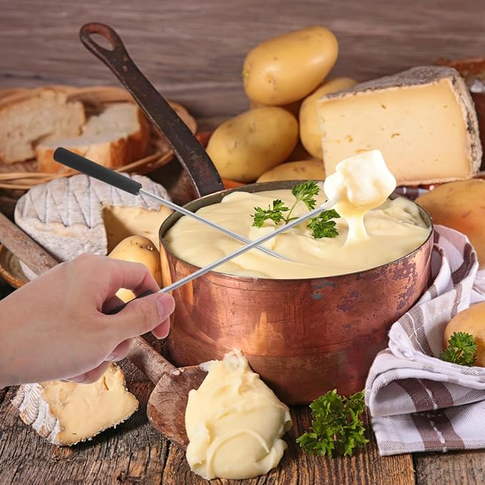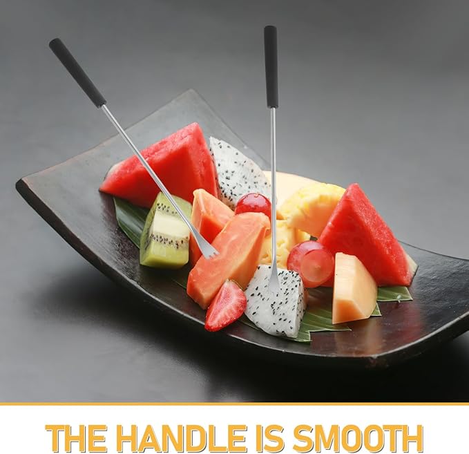 - Chocolate Forks: Fruit forks stainless steel dessert forks are suitable for chocolate fountain, cheese fondue, and roasting marshmallows. The fondue sticks metal long handle provides a safe distance while cooking, and it is ideal for scooping chocolate and cheese