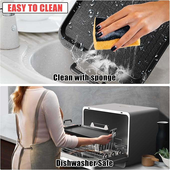- Non-stick & Non-Rust Coating: The surface of our griddle has a convenient non-stick coating, making cooking and cleaning easier. Your food won’t stick, allowing you to create Insta-worthy meals every time. Your food will cook up crisp outside, and tender inside. You’ll make perfect pancakes, grilled cheese sandwiches, etc. Food slides right off and onto your plate and clean-up is quick and easy. No more having to soak your pan or struggle to do the dishes