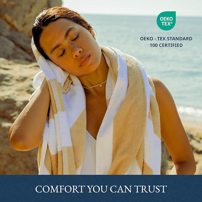 - Looking for the perfect beach towel? Lane Linen 100% Cotton oversized beach towels offers optimal coverage for maximum comfort, extremely absorbent and fluffy, making them perfect for lounging by the pool or enjoying a day at the beach. So what are you waiting for? Get ready to relax in style!