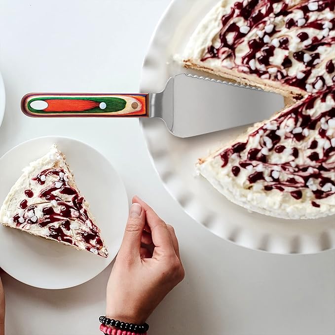 - BEAUTIFUL & FUNCTIONAL: Stylish cake server fashioned with an easy-to-hold and vibrant birch wood handle that provides the most comfortable and sturdy grip for any level of cutting jobs