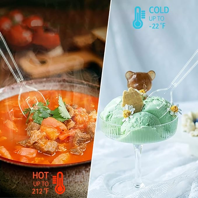 - COLORLESS AND TASTELESS - The plastic spoon clear can withstand hot food/cold food well without melting or softening, ideal for breakfast, lunch, or dinner service or for desserts. Eelegant clear design makes it easy for you to track who is using which spoon