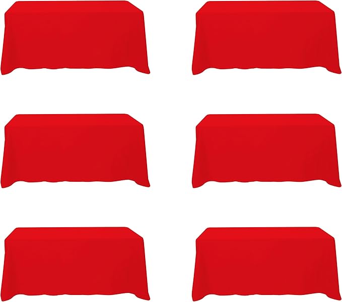 BRILLMAX 6 Pack Red Tablecloths for 6 Foot Rectangle Tables 90 x 132 Inch - 6ft Rectangular Bulk Linen Polyester Fabric Washable Cloth Cover for Wedding Reception Banquet Birthday Party