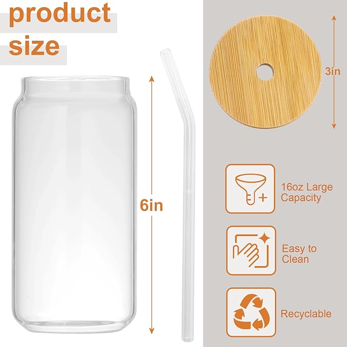 - 16oz Coffee-Themed Can Glass Cup – Designed in a trendy beer can shape (6x3 inches), this glass is not only aesthetically pleasing but also highly functional. With a 16oz capacity, it’s perfect for enjoying iced coffee, lattes, tea, juice, smoothies, soda, and more. Plus, it fits most car cup holders, making it ideal for home, office, or on-the-go use.