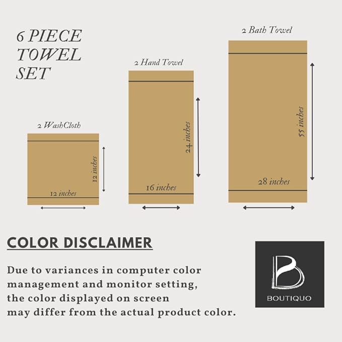 - Each set contains 2 oversized bath towels 28x55 inches, 2 hand towels 16x24 inches & 2 wash cloths 12x12 inches