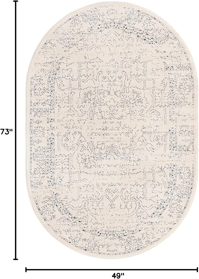 Unique Loom Isabella Collection Area Rug - Adjani (4' 1" x 6' 1" Oval, White/ Blue)