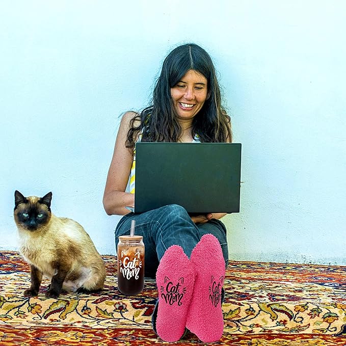 - You will Receive: 1 * 18OZ cat mom printed glass, 1 * bamboo cup lid, 1 * glass straw, 1 pair of pink thickened cat mom design socks. This is cat friendly Glass pint glasses. They are also a perfect Valentines day gift for those who love their cats