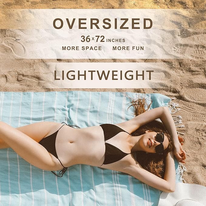 - GENEROUS 36X72 INCHES:Stretch out and bask in the luxury of our oversized 38x72-inch beach towel. Whether you're lounging under the sun, drying off after a swim, or enjoying a picnic at the park, this spacious design gives you the freedom to relax in ultimate comfort—wherever your adventures take you.