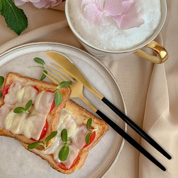 - Meticulous and Elegant Design: gold and black silverware is simple yet classic, modern and elegant, which can complement most of your dinnerware set; Timeless style meets contemporary design in the sophisticated gold utensils. The smooth edge of the handle is pleasure to hold, appropriate weight and perfect balance are added to ensure maximum comfort during use.