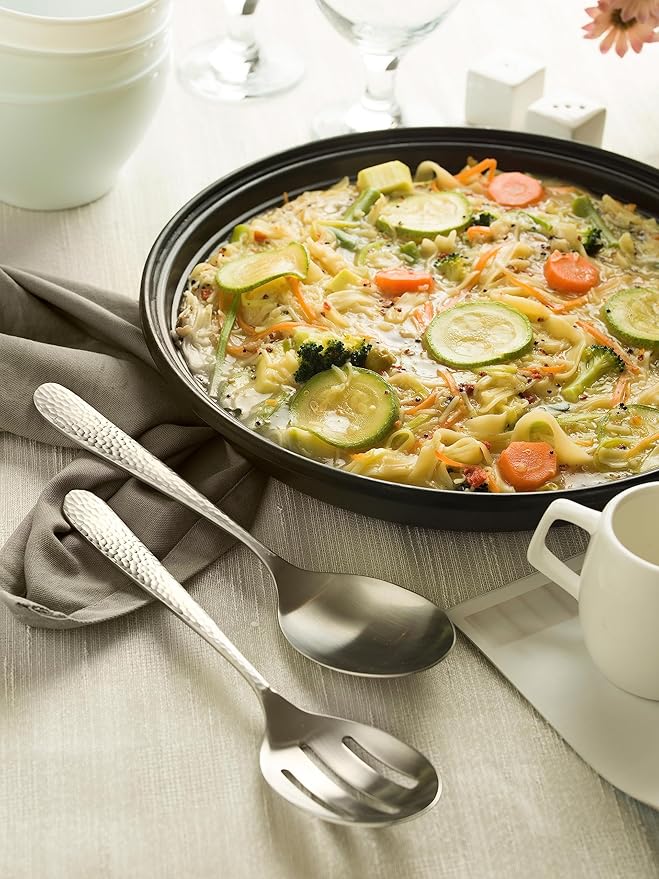 - Complete Serving Solution: This 10-piece set includes 2 slotted serving spoons, 2 serving spoons, 2 salad serving spoons, 2 salad serving forks, and 2 butter knives—each piece crafted to match your Fidenza Hammered Matte flatware and enhance any dining or entertaining experience. It also pairs beautifully with Marettimo Hammered Matte flatware sets for a cohesive, elegant table.