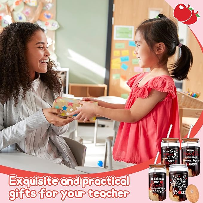 - christmas Ideal Gift for Teachers: with exquisite craftsmanship and attractive appearance, the 16oz glass cups with lids and straws are considered as ideal presents for your new teachers, retired teachers, daycare teachers, kindergarten teachers, school teachers, faculty and staff, teacher's aides or assistants, etc., which will gain their affection