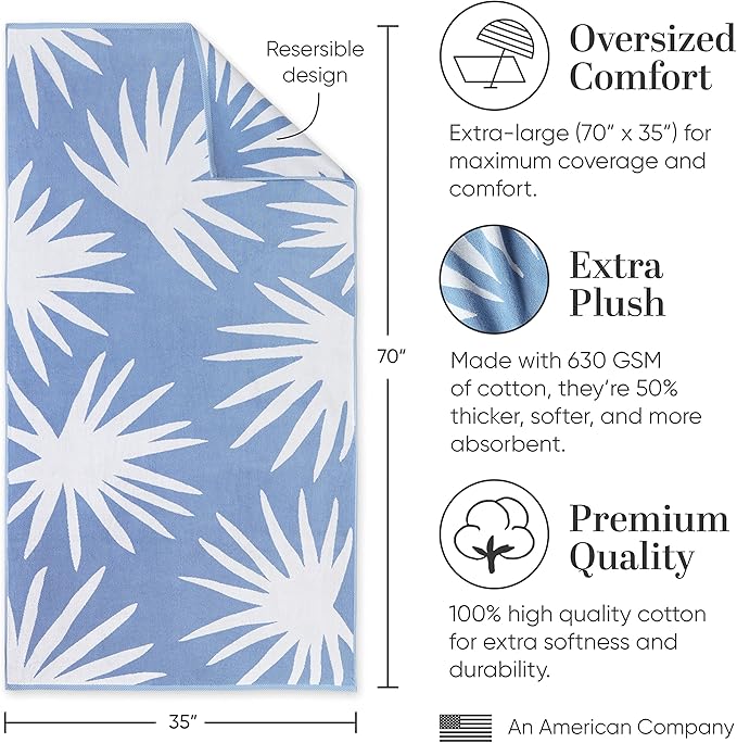 Laguna Beach Textile Co. Tropical Cabana Beach Towel - Oversized, Plush 630 GSM Cotton - Agave Blue