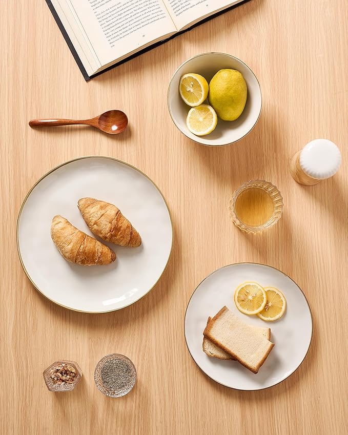 - 【12-Piece Dinnerware Set】This dish set services for 4 that includes four 10.25 inch dinner plates, four 8 inch salad plates and four 6 inch cereal bowls.This plates and bowls set can meet the need of your family well.
