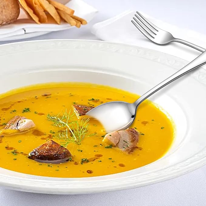 - COMFORTABLE TO GRIP: The silver dinner forks and spoons set have ergonomically-designed and round handle, provide a suitable grip, make it feel good in hands, Appropriate weight and suitable size, ensure well balance, Make you to hold and grip the product comfortably