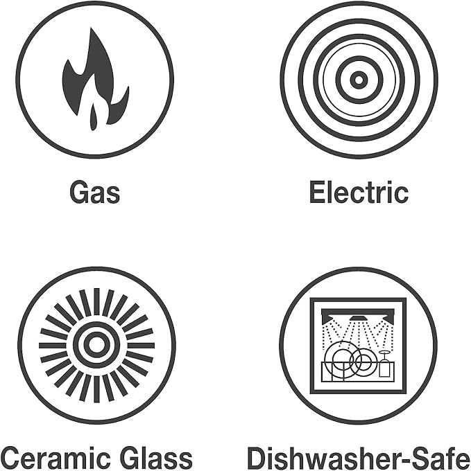 - COMPATIBLE WITH MULTIPLE COOKTOPS: Designed to work efficiently on gas, electric, and ceramic glass cooktops, offering versatility for different kitchen setups.