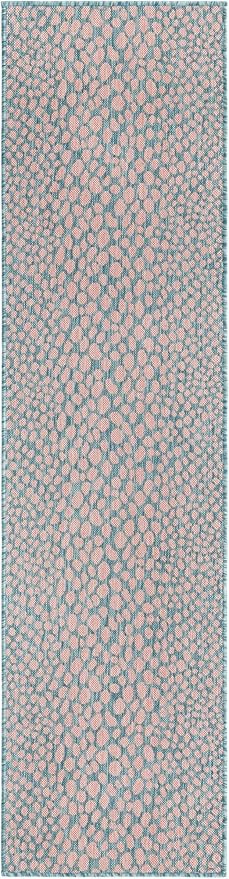 Unique Loom Jill Zarin Jill Zarin Outdoor Collection Area Rug - Cape Town (2' x 8' Runner, Pink and Aqua/Light Blue)