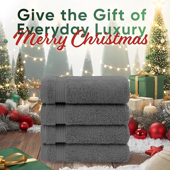 American Veteran Towel, Hand Towels for Bathroom Set of 4, 100% Cotton Turkish Hand Towel Sets, Soft Hand Face Towels, Dark Gray Hand Towels
