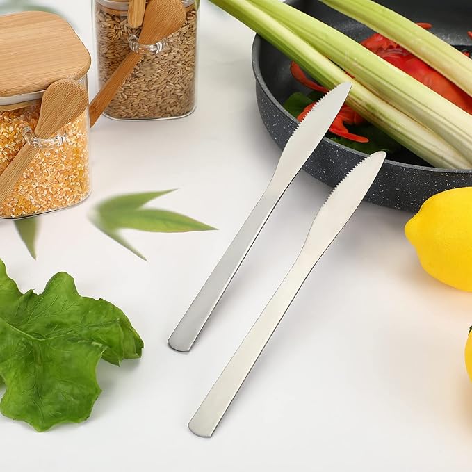 - Suitable Size Design: each of our dinner knife measures about 8.43 inches/ 21.4 cm in total length, with a relatively long handle for easy and safe gripping, and the knife head is proper for cutting food, you can use with confidence