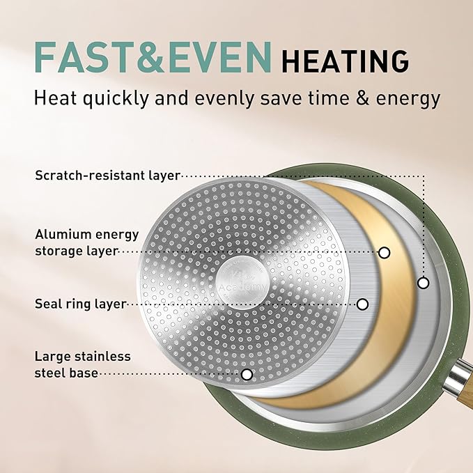 - Heats Quickly and Evenly: This cookware uses professional grade aluminum core that conducts heat quickly and evenly with precise temperature control, which will save time and energy