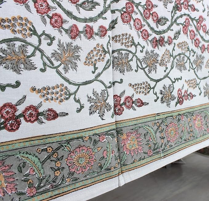 Ridhi Coral Pink Hand Block Print Cotton Rectangle Tablecloth 190" x 72" inches Reusable Table Cover Decorative Everyday Use for Dining, Farmhouse, Home, Party, Festive, Wedding, Fall