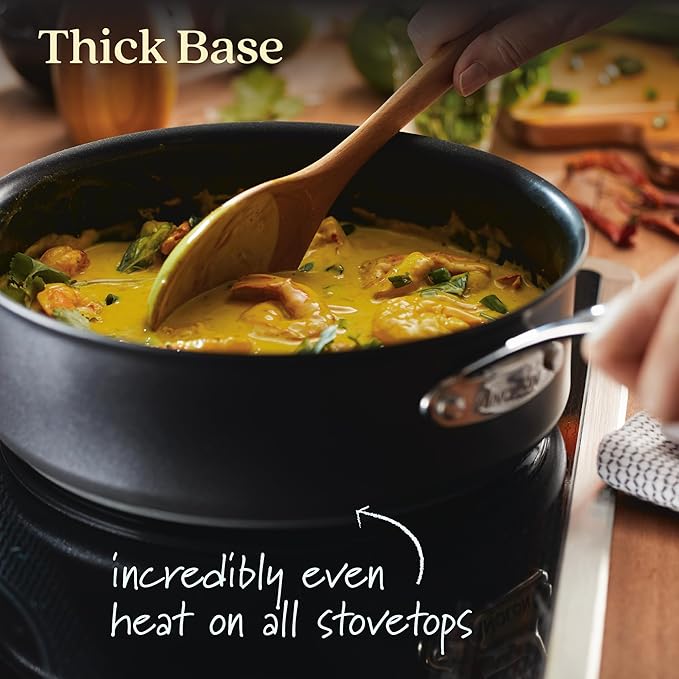 - INNOVATIVE BASE: Hybrid nonstick saute pan features a thick, uniquely constructed stainless steel base that delivers incredibly even heat on any cooktop, including induction