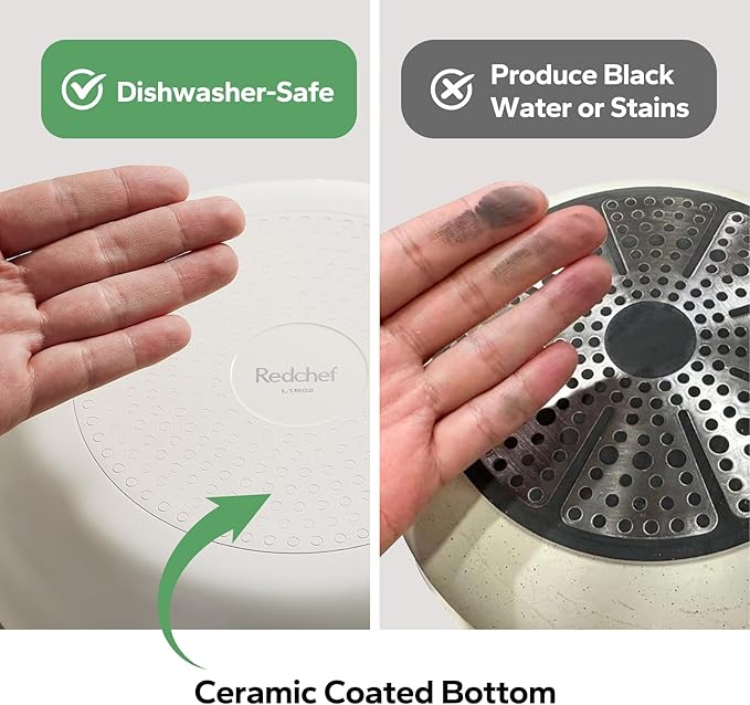 - Natural Ceramic Coating: Made of natural ceramic, our Redchef kitchen ceramic cookware set is no Teflon and no PFAS, PTFE, PFOA, lead, or cadmium