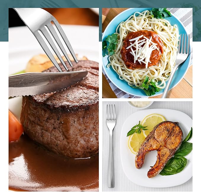 - Multipurpose: our stainless steel dessert forks are very suitable for eating steak, spaghetti, pasta, lasagna, chicken and vegetables, ideal for daily use, weddings, parties, celebrations and family dinners, picnics, BBQ, and more; And they are also ideal for restaurants, bistro, cafe, and hotel
