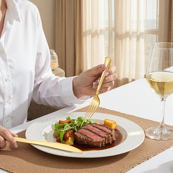 - 【ELEGANT HIGH-END APPEARANCE】Our gold silverware disposable appearance shines with a metallic luster looks like real metal tableware, bringing a sense of elegance and class to the table setting.