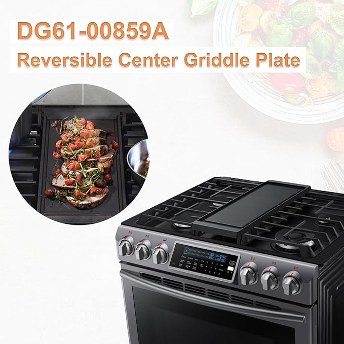 - 【DISTRIBUTE HEAT EVENLY】Made by thicken cast iron material, our samsung cast iron griddle DG61-00859A heats up quicker and distribute the heat more evenly. The samsung center griddle for gas range takes less time to heat and retains heat longer. Also, it’s solid enough and you don’t need to worry about the scratching. It means the samsung griddle plate has longer usage life.