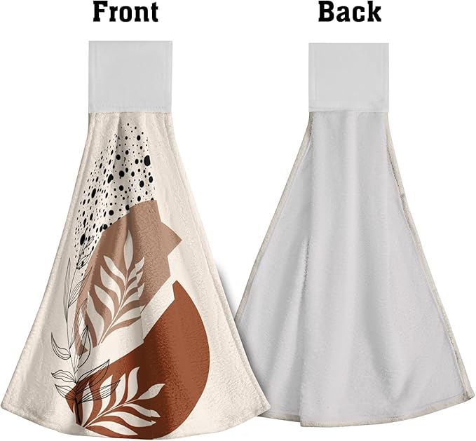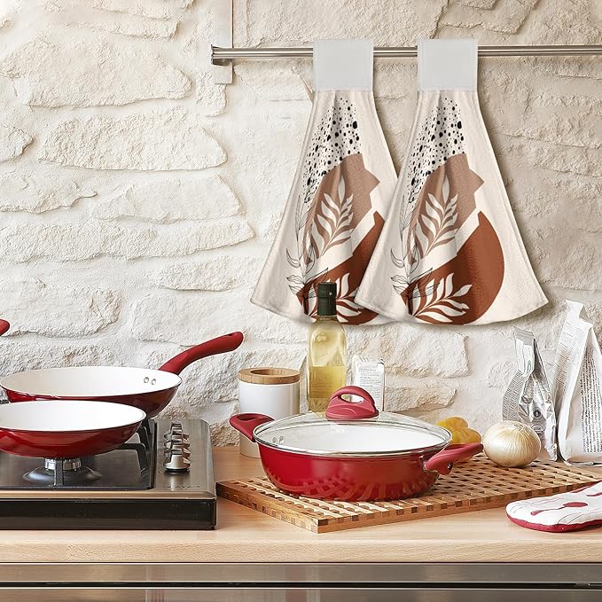Giwawa Brown Boho Kitchen Hand Towels 2 Pieces Abstract Orange Hanging Tie Towels with Loop Soft Dishcloth for Bathroom Restroom Home Decor