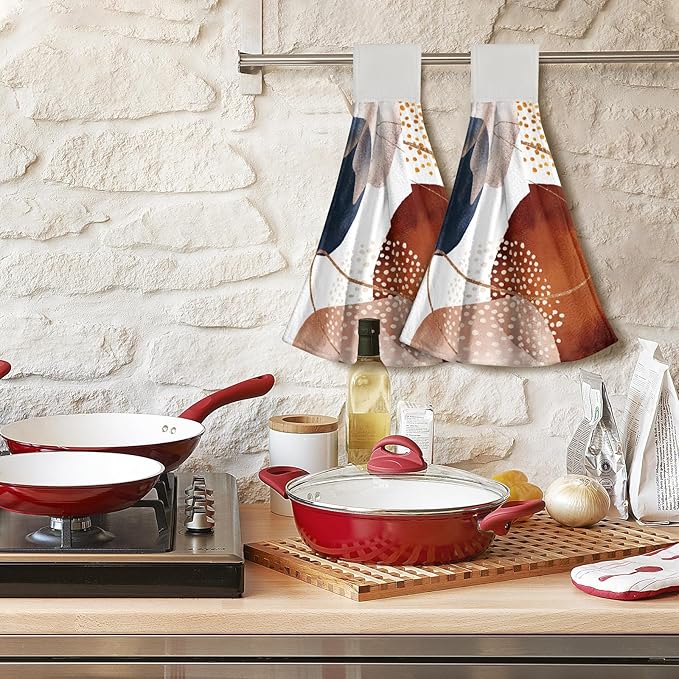 Giwawa Boho Abstract Hanging Kitchen Towels Modern Orange Dishcloths 2PCS Soft Absorbent Fingertip Towel for Bathroom Restroom Home Decor