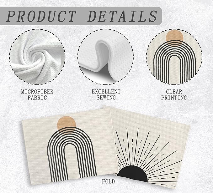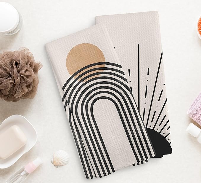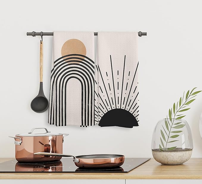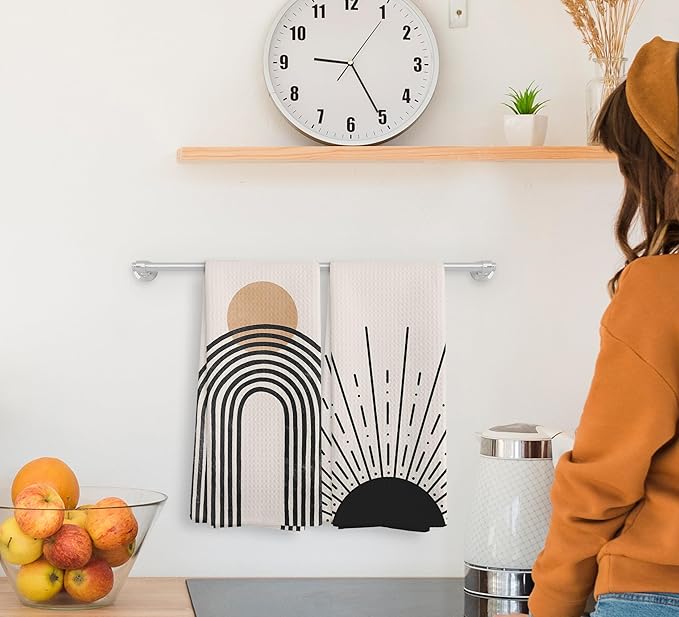 Boho Black Sun Sunrise Sunshine Rainbow Kitchen Towels and Dishcloths Sets of 2,Bohemian Absorbent Drying Cloth Hand Towels Tea Towels for Bathroom Kitchen,Boho Gifts for Women Girls,16×24 inches