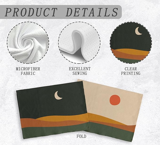 Abstract Boho Sun Moon Mountain Lake Landscape Kitchen Towels and Dishcloths Sets of 2,Boho Absorbent Drying Cloth Hand Towels Tea Towels for Bathroom Kitchen,Boho Gifts for Women Girls,16×24 inches