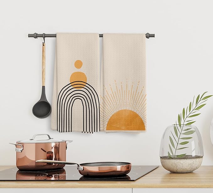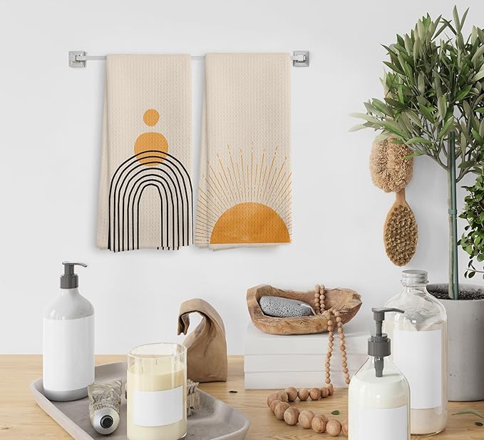 Boho Black Sun Sunrise Sunshine Rainbow Kitchen Towels and Dishcloths Sets of 2,Bohemian Absorbent Drying Cloth Hand Towels Tea Towels for Bathroom,Boho Gifts for Women Girls,16×24 inches (Orange)