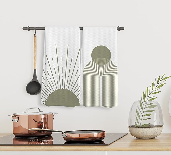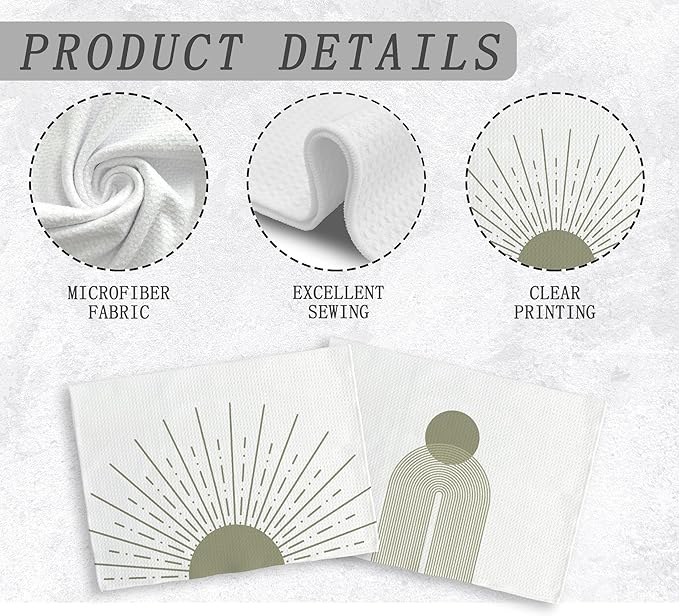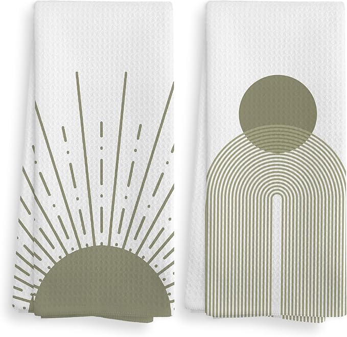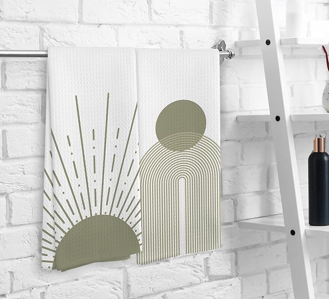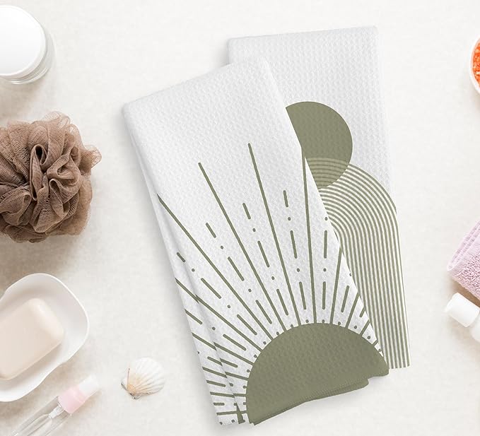 Boho Black Sun Sunrise Sunshine Rainbow Kitchen Towels and Dishcloths Sets of 2,Bohemian Absorbent Drying Cloth Hand Towels Tea Towels for Bathroom,Boho Gifts for Women Girls,16×24 inches (green)