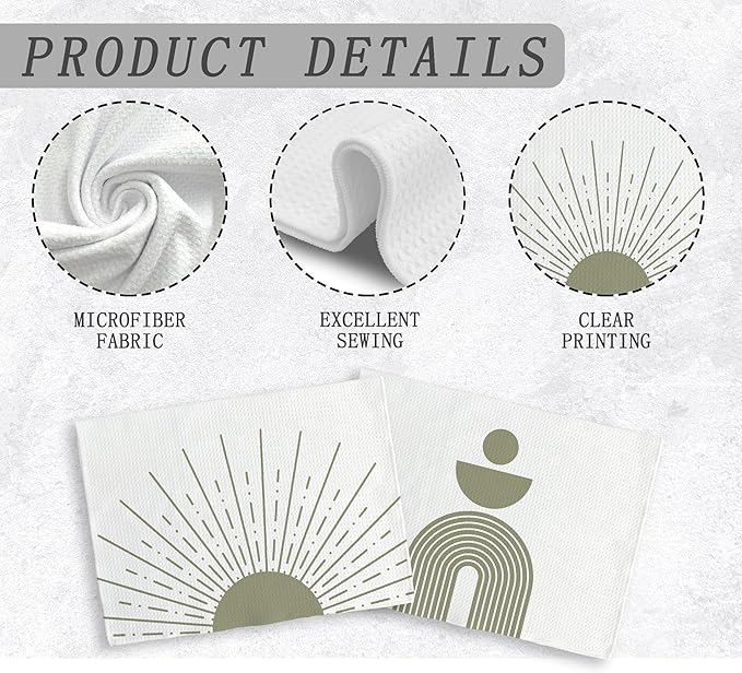 Boho Abstract Sage Green Sun Sunrise Sunshine Rainbow Geometric Shapes Kitchen Towels and Dishcloths Sets of 2,Boho Absorbent Drying Cloth Hand Towels Tea Towels for Bathroom Kitchen,16×24 inches