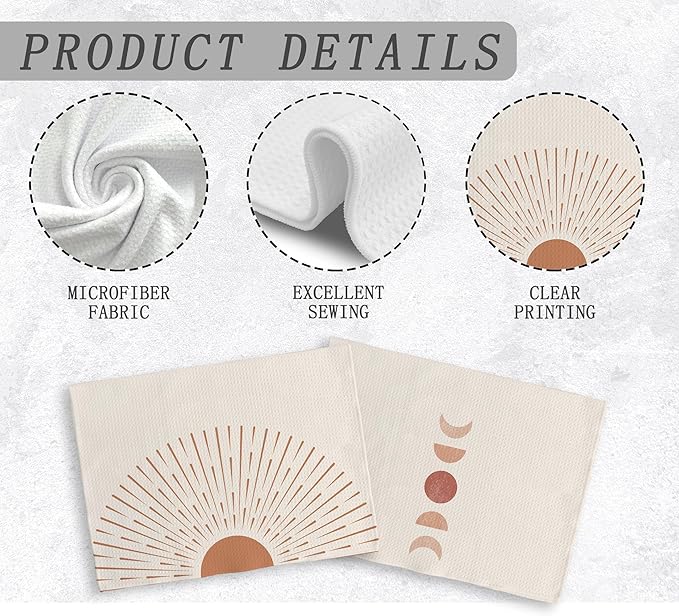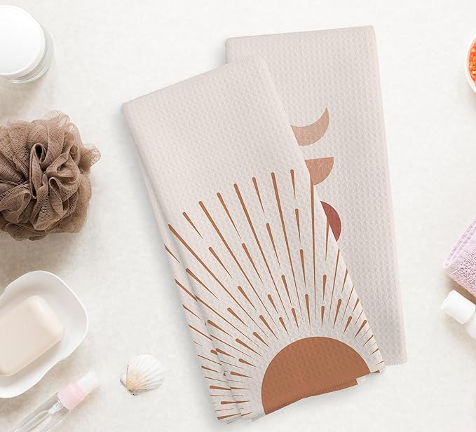Boho Black Sun Sunrise Sunshine Rainbow Kitchen Towels and Dishcloths Sets of 2,Bohemian Absorbent Drying Cloth Hand Towels Tea Towels for Bathroom,Boho Gifts for Women Girls,16×24 inches (brown)