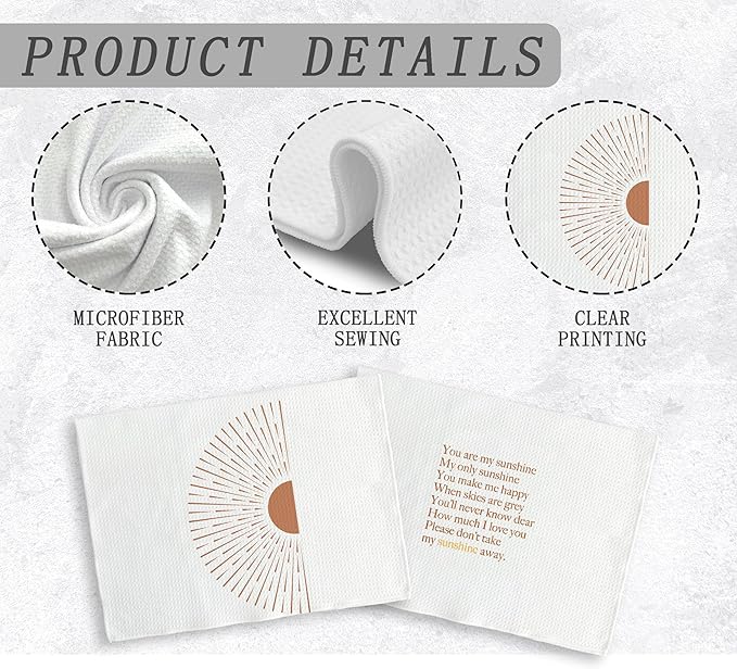 You are My Sunshine Boho Sun Sunray Sunshine Kitchen Towels and Dishcloths Sets of 2,Boho Absorbent Drying Cloth Hand Towels Tea Towels for Bathroom Kitchen,Boho Gifts for Women Girls,16×24 inches