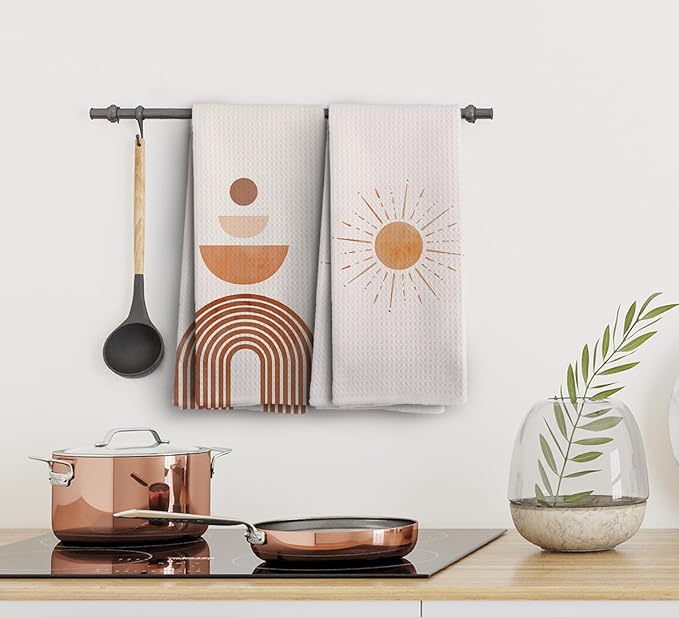 Boho Sun Sunshine Rainbow Geometric Semi Circle Kitchen Towels and Dishcloths Set of 2,Boho Absorbent Drying Cloth Hand Towels Tea Towels for Bathroom Kitchen,Boho Gifts for Women Girls,16×24 inches