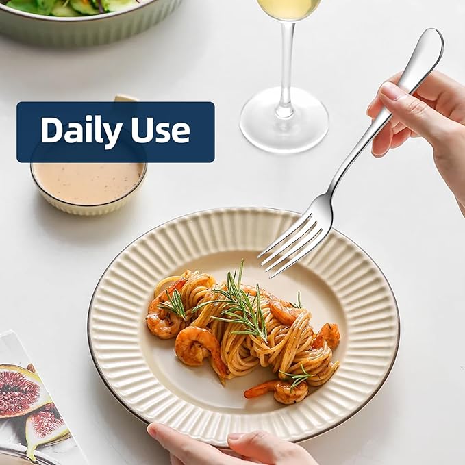 16 Piece Dinner Forks, 8 Inch, Top Food Grade Extra-Fine Stainless Steel Silverware Forks,Silverware Set, Dishwasher Safe (Silver)