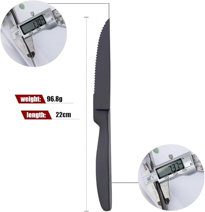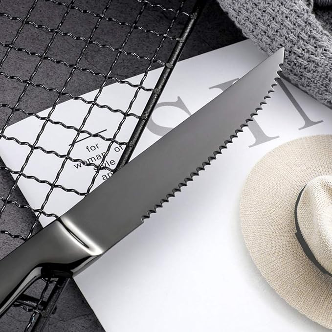 - Sharpness: The steak knife blade edges are smooth and sharp, able to cut hard steaks easily, micro-serrated edges keep the knife permanently sharp, never need to be sharpened.